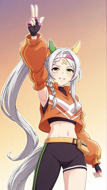 主体:动物耳朵、辫子、发带、头带、马耳、马娘、马尾、长发、极长发、白发、黄眼,