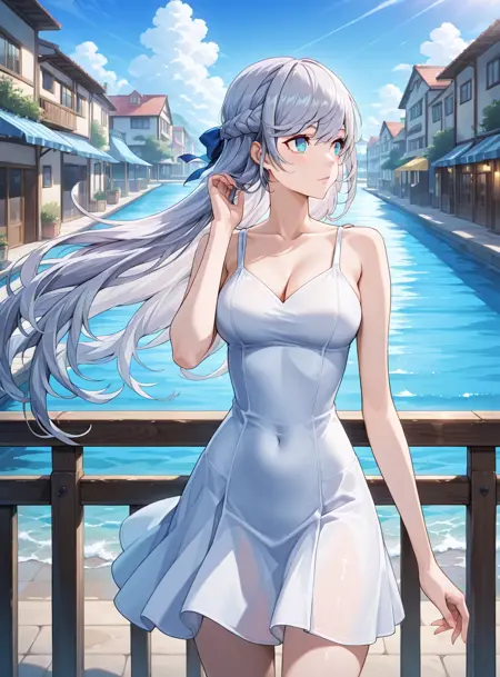 Kotone、長い髪、白いシャツ、黒いドレス、