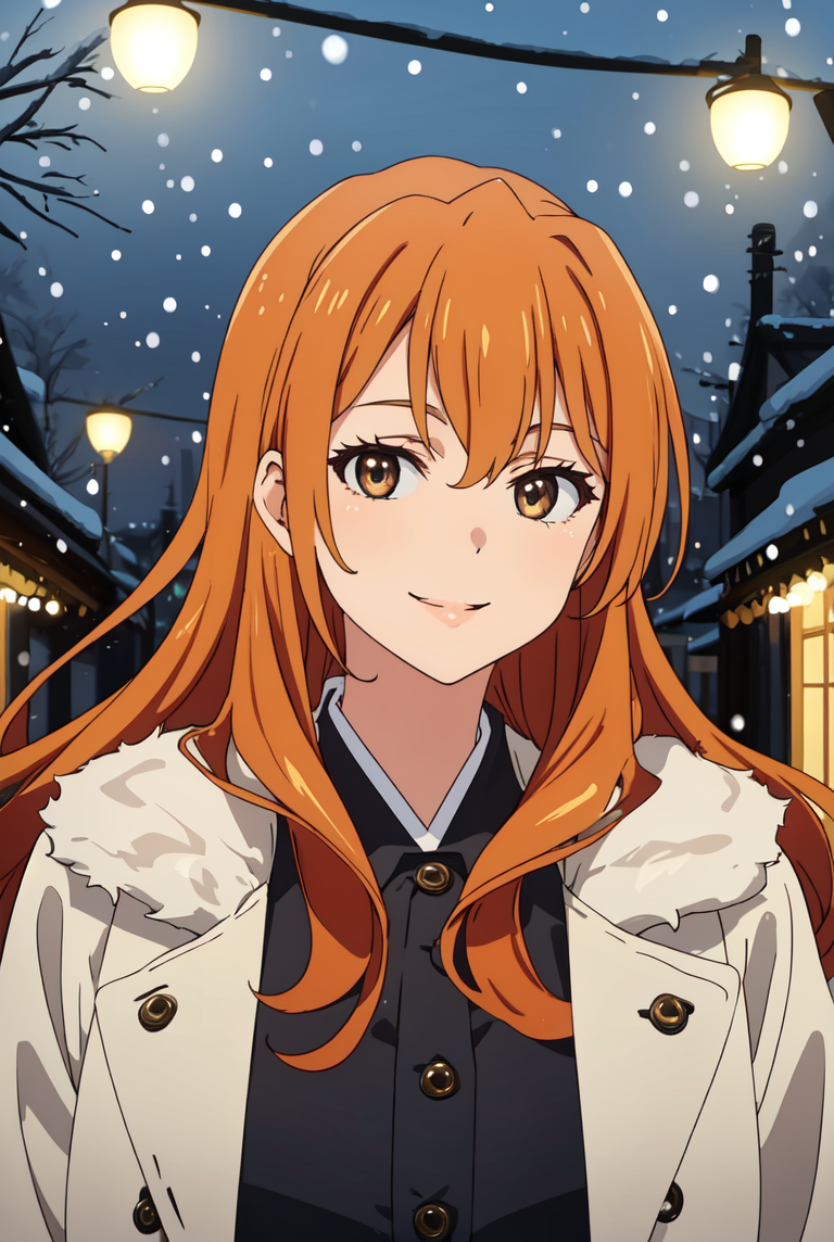 トリガー単語: kouko_kaga、濃いオレンジ色の髪、濃い目、長い髪
