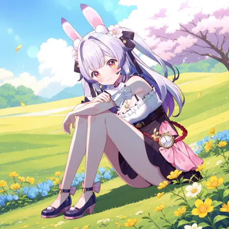 ベーステクスチャにはnoobai 110%を使用し、学習素材としては初代胸毛兔、国風華服、拜年祭、都市麗人、蝶々晚礼服の5つの皮を用いた。トリガーワードはそれぞれcdm、gfhf、bnj、dslr、wlfであり、現在のところ新皮「仙兔霓裳」の素材は存在しない。