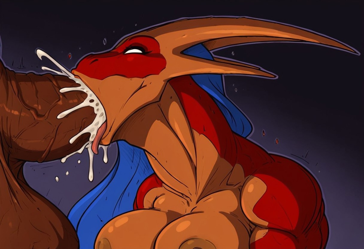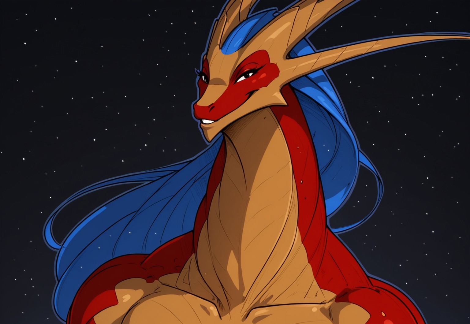 正向提示词:DWDS,兽人,拟人化,鳞片,雌性龙,无翼龙,蓝色头发,超长发,黑色眼睛,红色身体,红色鳞片,棕色身体,棕色鳞片,双色身体,双色鳞片,肌肉女性,大乳房,棕色乳房,深棕色乳头,深棕色乳晕,腹肌