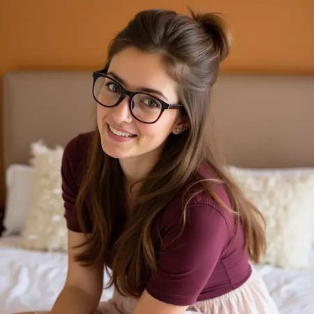 One of the hair styles Flux doesn't know is a half up, half down hairstyle, with the front part of the hair pulled back and secured either by a knot, a claw clip or a smaller hair clip.