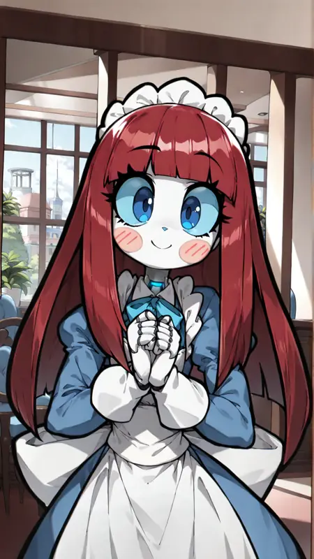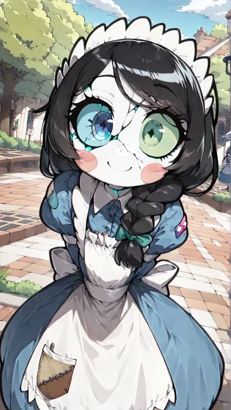 基础提示:1girl, solo, 蓝色眼白, 蓝色眼睛, 鼻子, 脸颊贴纸, 白色皮肤