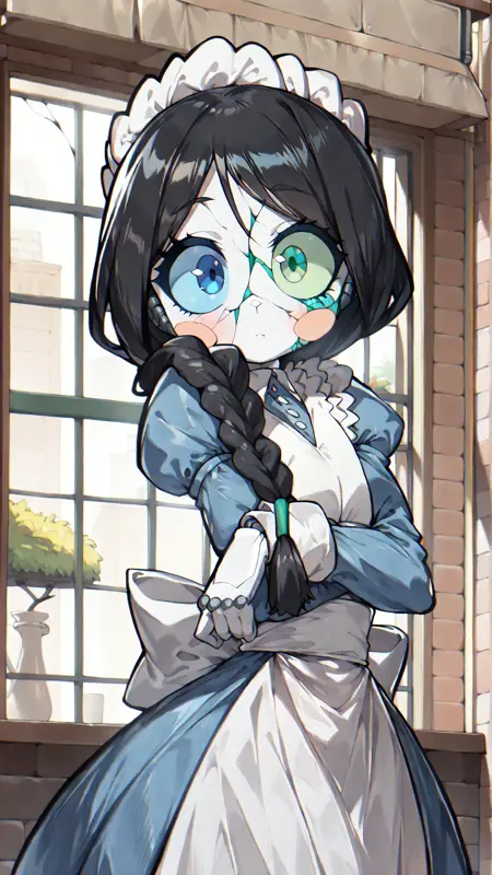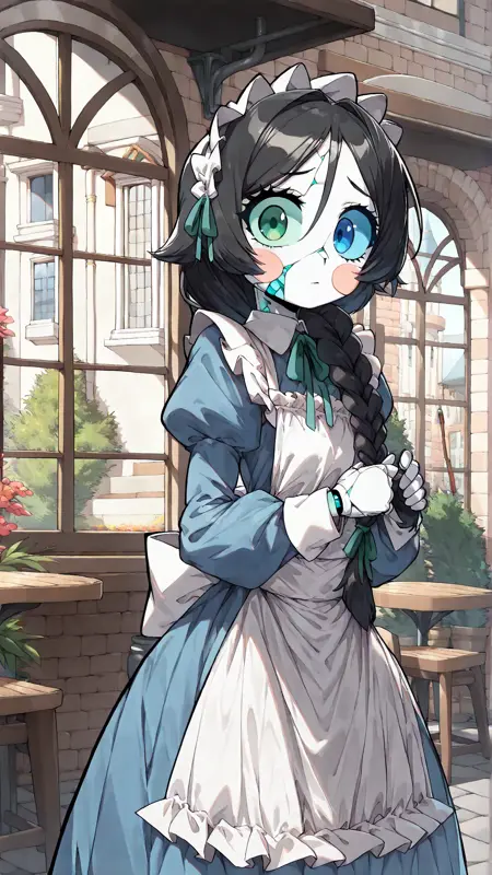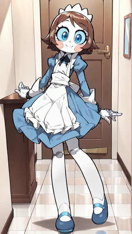 服装:女仆,蓝色连衣裙,蓝色鞋子