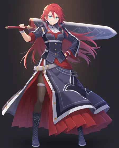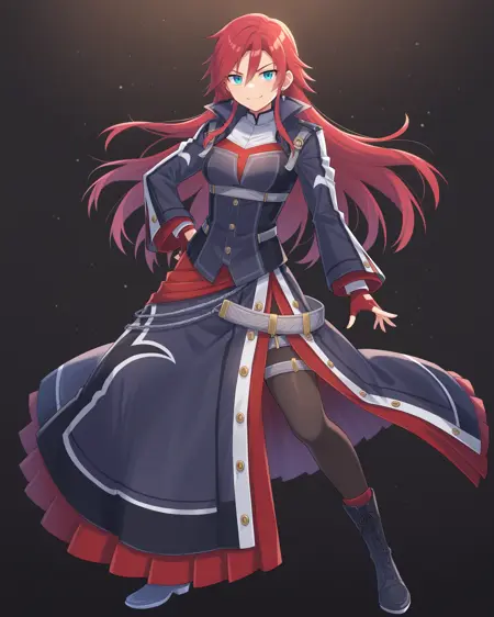 <lora:CelisOrtesia_Illustrious:1>, Celis Ortesia, 빨간 머리, 긴 머리, 어깨 위의 옆머리, 청록색 눈, 중간 크기의 가슴, 회색 귀걸이, 갑옷 드레스, 긴 치마, 벨트, 검은 팬티후스, 검은 하이힐 부츠, 끈으로 묶인 신발, 손가락 없음 장갑,