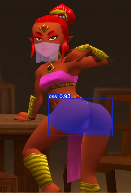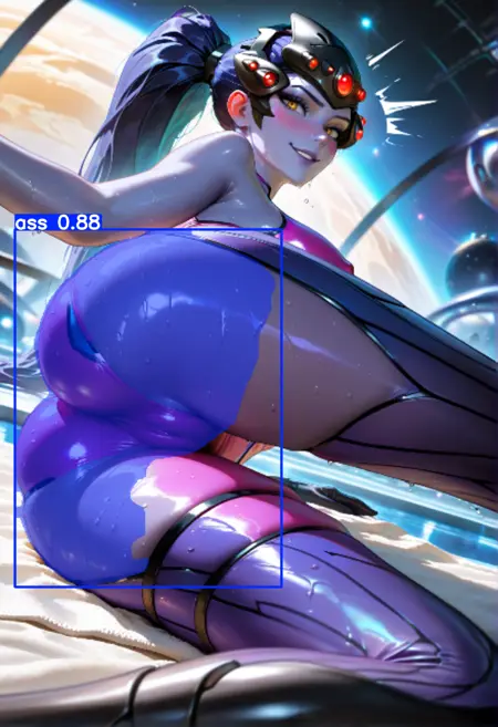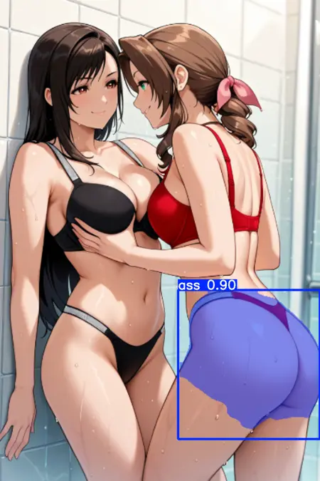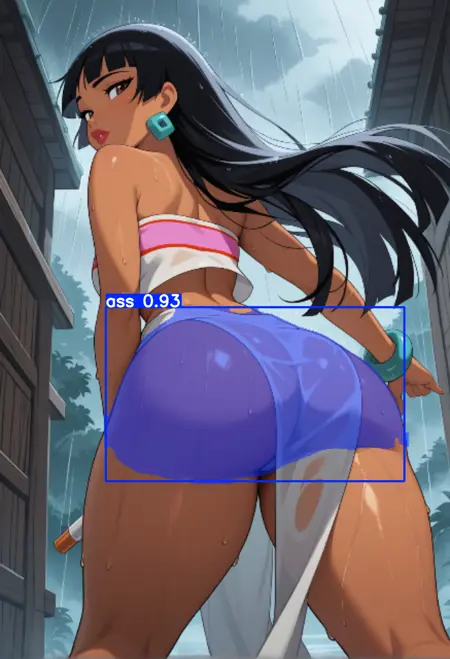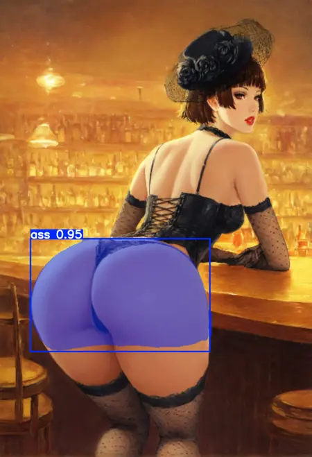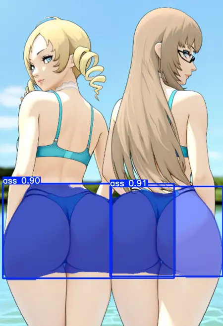 このバージョンは YOLOv8- seg(インスタンスセグメンテーションモデル)で学習されています。つまり、ボックスではなく、ターゲットの部位に対してより精密に検出できます。また、v1より10枚多い画像で学習されており、異なる角度からの湿った/ツヤのあるお尻の検出を向上させることが目的です。