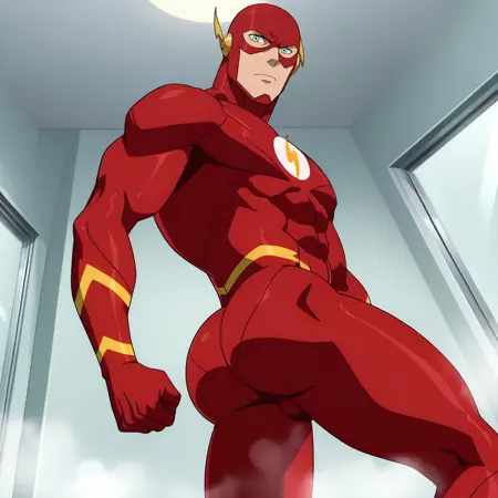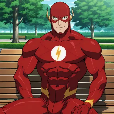 트리거 단어: 플래시, 빨간 마스크, 빨간 바디수트, 로고, 노란 팔찌, 노란 벨트