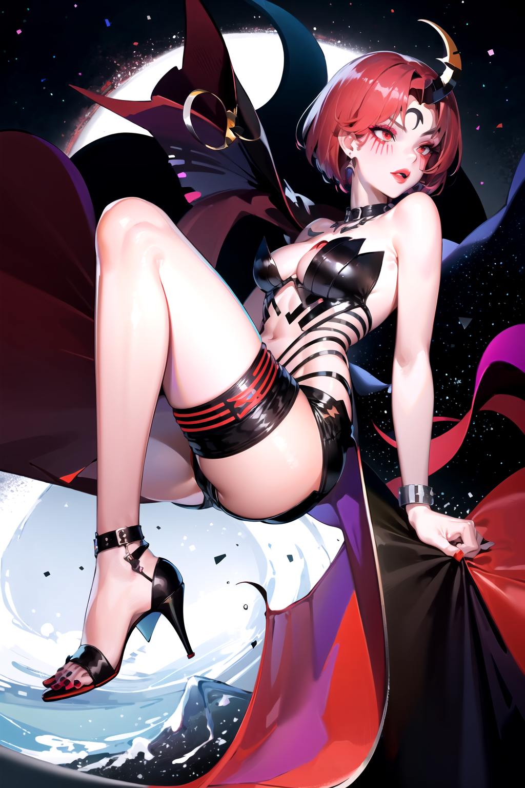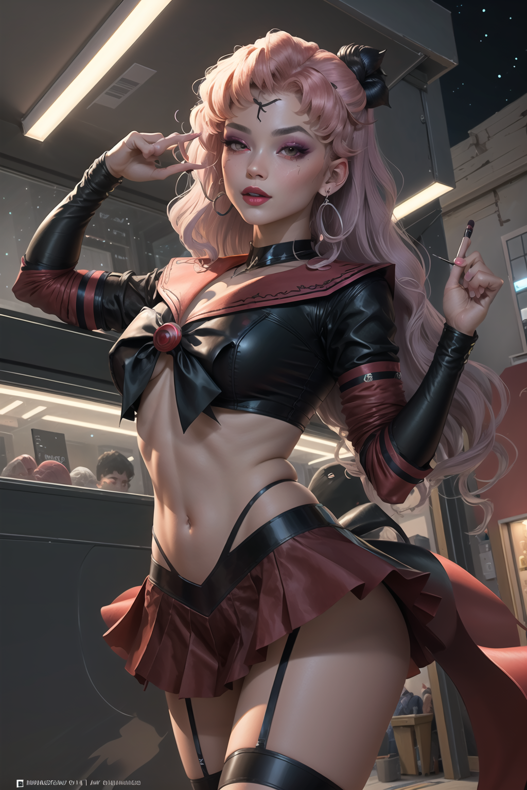 long legs, crescent, crescent facial mark, makeup, lipstick, mascara, eyeshadow - 悪のセーラー戦士の好みの外観…ただし、自由に調整可能です。