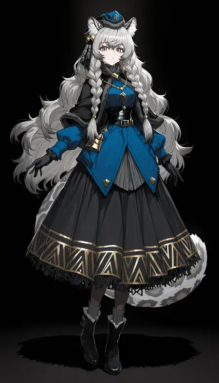 • grey eyes,twin braids,grey hair,leopard tail ,