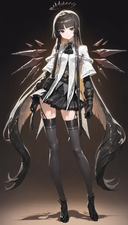 黑眼睛,黑发,姬发式,virtuosa光环,眼下痣,双色发,内层染色发,分离的翅膀,