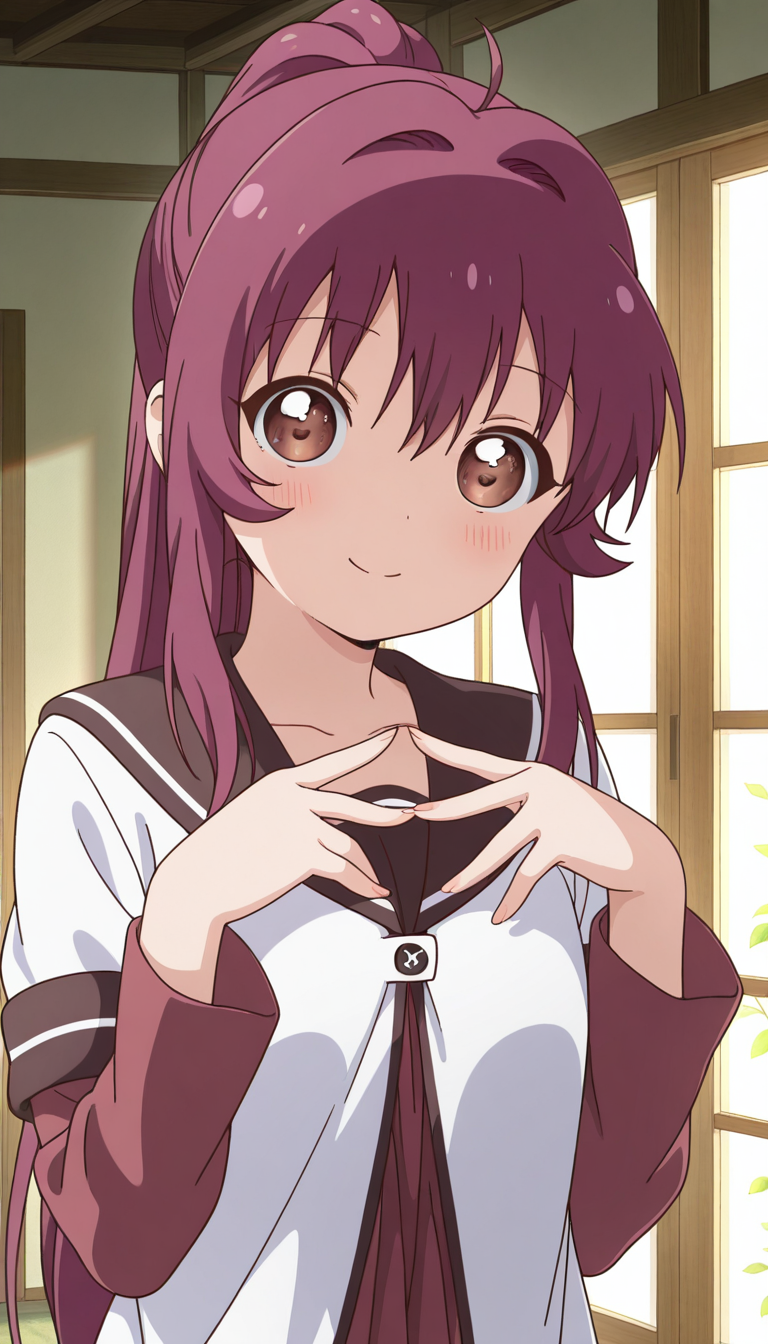 이것은 일본 애니메이션 『Yuru Yuri』에 등장하는 여주인공 Sugiura Ayano입니다.