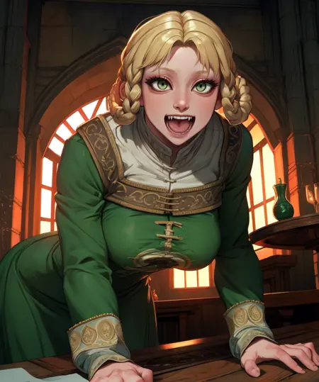 standard v2 -> Rya, or v3 RyaZorayas, - blonde hair, green eyes,