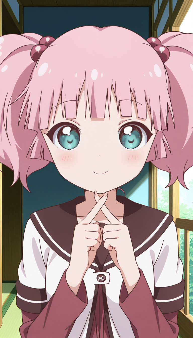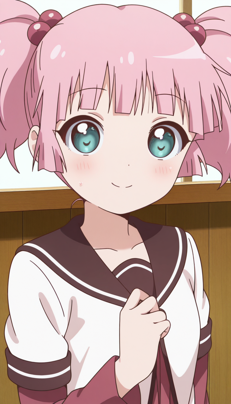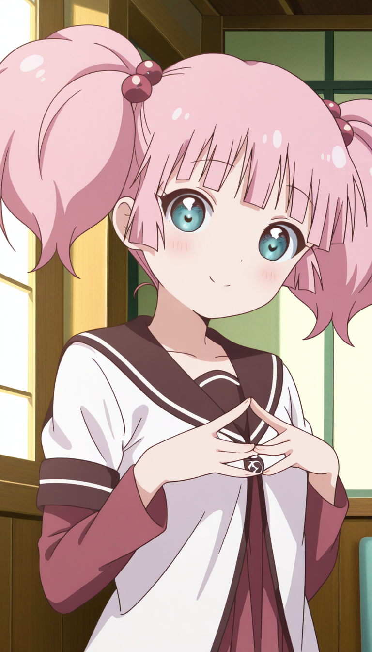 This is Yoshikawa Chinatsu, the female character in the Japanese anime "Yuru Yuri".
