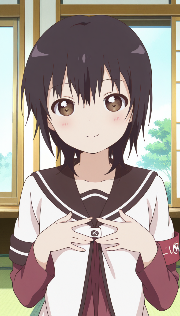 이것은 일본 애니메이션 『유루유리』에 등장하는 여주인공 선미 유이입니다.