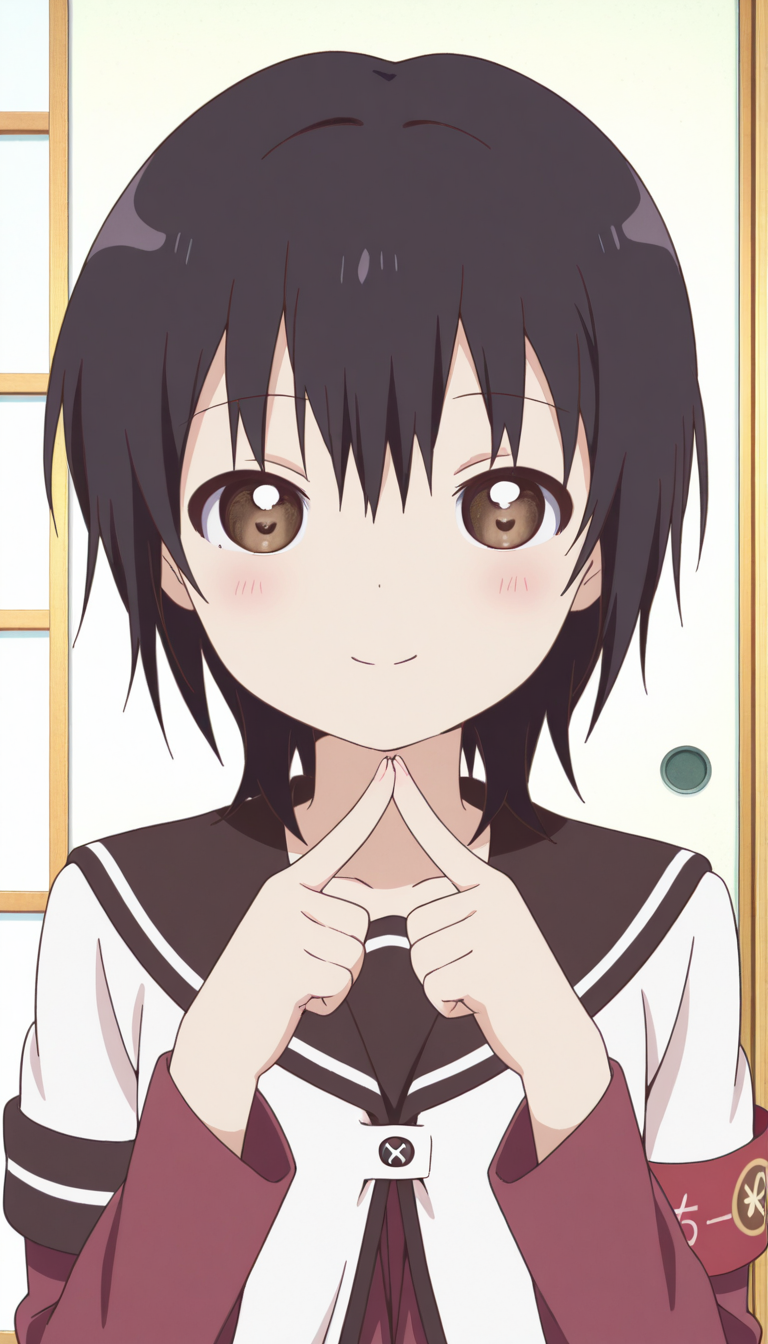This is Funami Yui, the female character in the Japanese anime "Yuru Yuri".