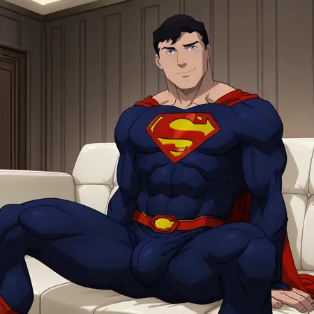 슈퍼맨, 검은 머리, 푸른 눈, 빨간 바디수트, 빨간 망토, 로고, 빨간 벨트