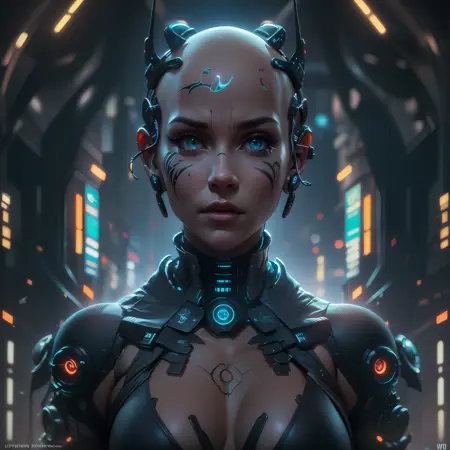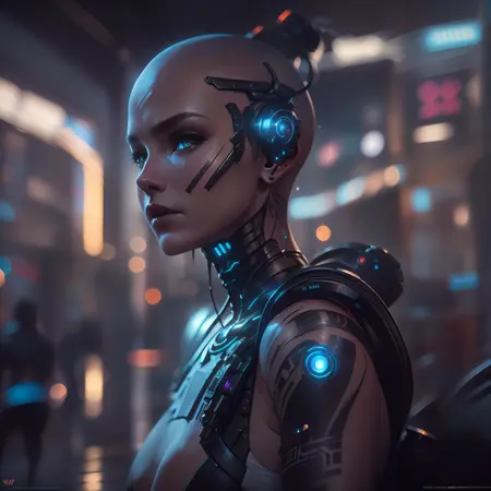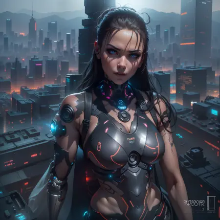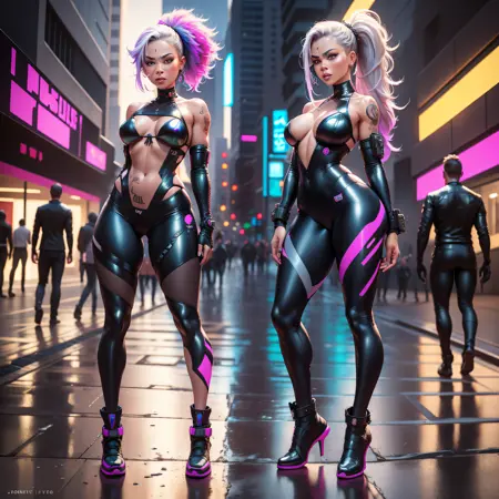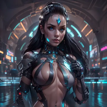 극도로 상세한 사이버펑크 스타일로, 피부, 눈, 머리카락 및 놀라운 몸매를 가진 환상적인 효과를 포함합니다.