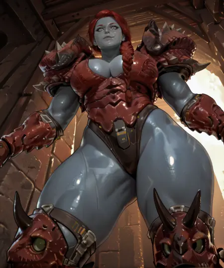 갑옷, 장갑, 가슴 노출, 어깨 보호대, 레오타드, 돌기