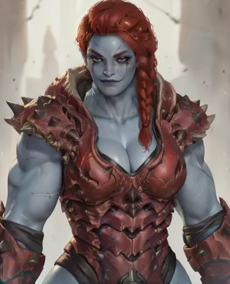 armor, gauntlets, cleavage, pauldrons, leotard, spikes,