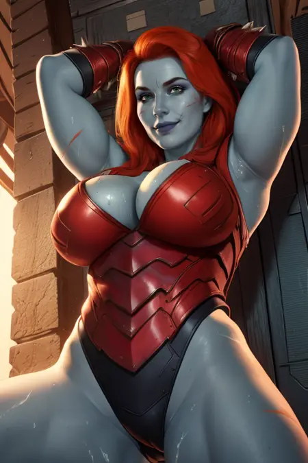 面部和身体有浅色疤痕 — 肌肉发达,如需减少请置于 Neg 中