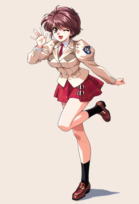 | 训练词汇 | school uniform, beige colored blazer, red necktie, white collar, puffy long sleeves, emblem, red plaid skirt, large breasts, brown hair, short hair, bangs, brown eyes已复制! pink bodysuit, headgear, helmet, fake animal ears, skin tight, light-blue shoulder pads, gauntlets, backskirt, large breasts, blue hair, medium hair, shaggy, one eye covered, blue eyes已复制! purple bodysuit, headgear, helmet, fake animal ears, purple mouth mask, skin tight, pink shoulder pads, gauntlets, backskirt, large breasts, blue hair, medium hair, shaggy, one eye covered, dead eyes, brown eyes已复制! |