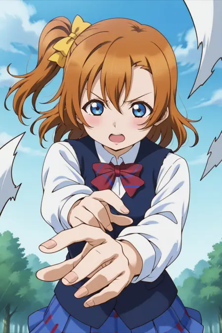 이 LORA는 매주 금요일 밤 7시 30분, BS11에서 방영 중인 신기동전기 건담 W의 연말 기념 전화 재방영 장면 중, 학교에 편입한 식민지 파괴 공작원이 외무차관의 딸로부터 받은 생일 파티 초대장을 찢는 장면을 생성하는 데 사용할 수 있습니다.