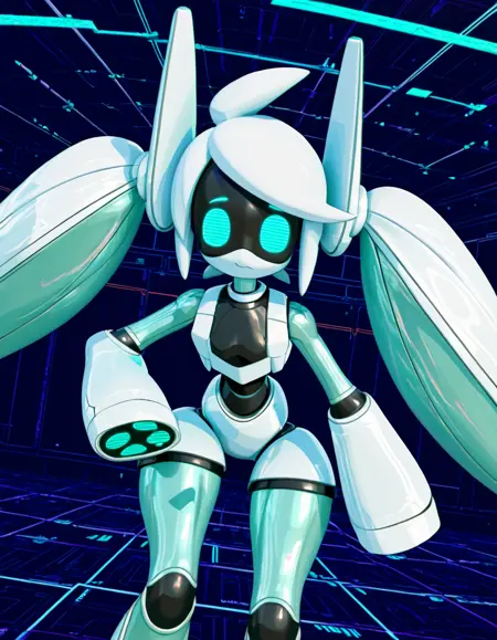 voidoll, robot, twintails, white hair, no humans, no mouth, blue eyes, android, humanoid robot, mecha,
