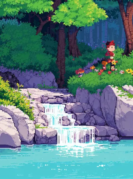 トリガー語は「Pixel World」で、人物のいない背景画像の生成をサポートし、自然、村、およびいくつかの自然風景に対応しています。LoRAの効果についてはまだ十分に探求できていませんので、皆さんは各自で試してみてください。推奨ウェイトは0.8程度です。