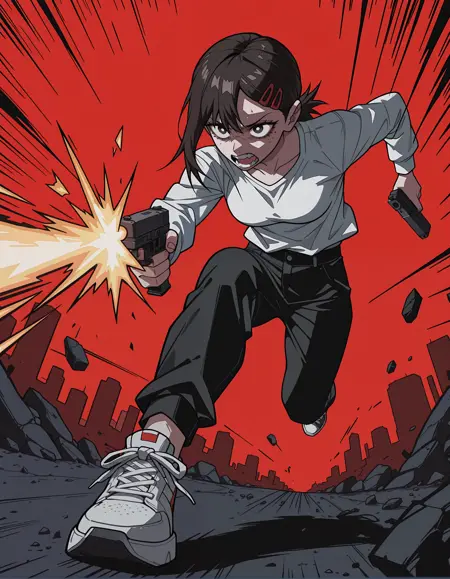 Useful tags : ligne claire - dynamic pose - abstract element - abstract background