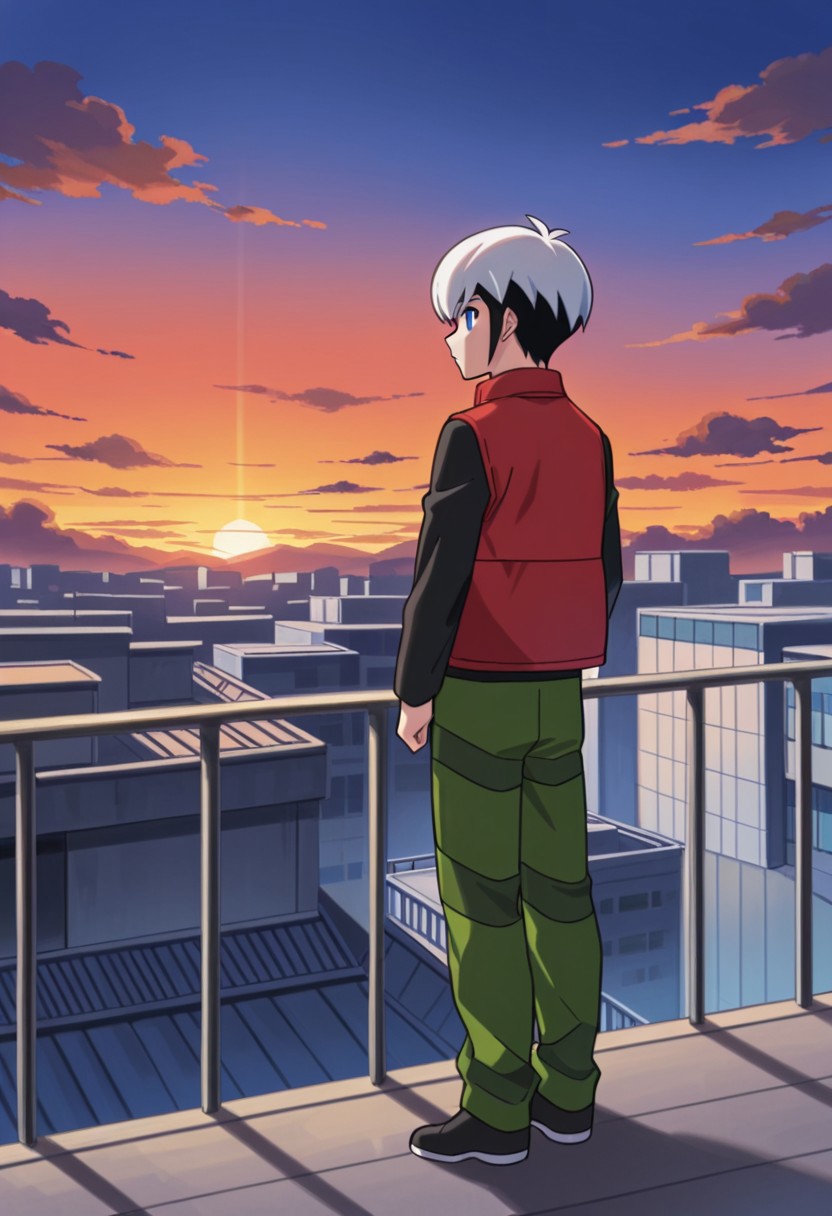 Chaud, male_focus, multicolored hair, white hair, black hair, blue eyes
