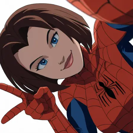 Basic prompt : 1girl, petraparker, mask, bodysuit, print bodysuit, spider web print, superhero