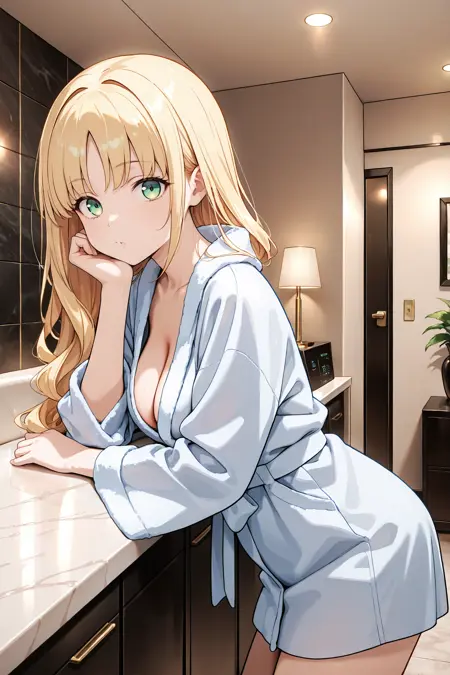 **Outfit 2 (unstable):**h0me0utfit,blue apron,dress,bare shoulders,white bodysuit,detached sleeves,