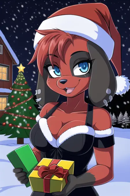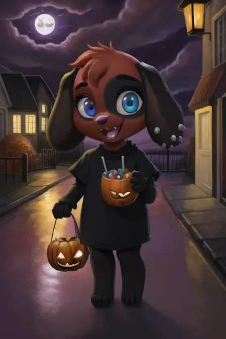 거미줄 티셔츠, 빨간 털, 처진 귀, 귀 piercing, 보라색 코