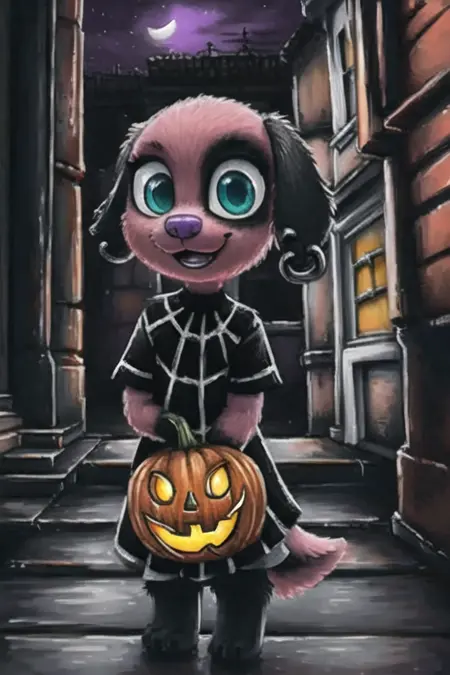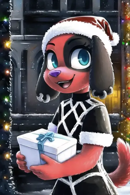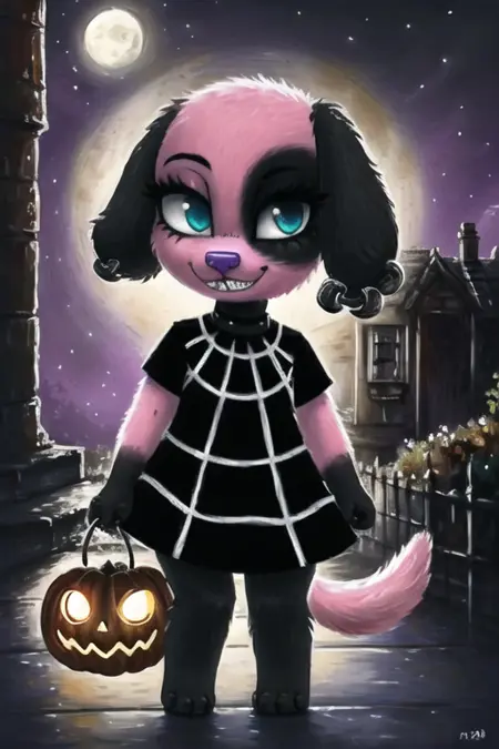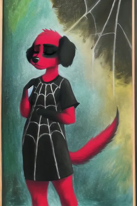 Spider-Web Tee, red fur, floppy ears, ear piercings, purple nose