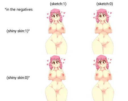 트리거 단어는 xtilxtil입니다. sketch도 긍정적인 영향을 미치는데, 이는 저자의 작품 대부분을 구성하기 때문입니다. 모든 작품에는 연도와 십 년 단위 태그(예: 2024, 20s)가 붙어 있습니다. 10s는 더 뚜렷한 선을 주고, 20s는 더 부드러운 음영을 줍니다. 이 화가는 약 2015년부터 활동해 왔습니다. Gelbooru 태그가 사용되었으므로, 그들의 예술에서 흔한 주제를 자유롭게 프롬프트로 입력하면 대체로 좋은 결과를 얻을 수 있습니다. 네거티브에는 monochrome, multiple views, artist name, watermark를 포함하는 것이 좋습니다. 저는 두 개의 에폭(02 및 08)을 업로드합니다. 전자는 후자보다 덜 뚜렷한 효과를 내지만, 둘 다 저에게는 각기 다른 매력을 느낍니다. 실제로 단순히 네거티브에 shiny skin을 넣고 모델 가중치를 낮추면 에폭 02의 효과를 대부분 재현할 수 있으므로, 저는 에폭 08만 사용할 것입니다.