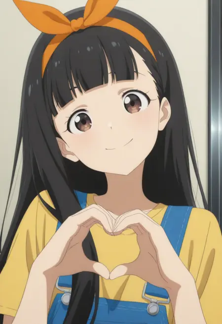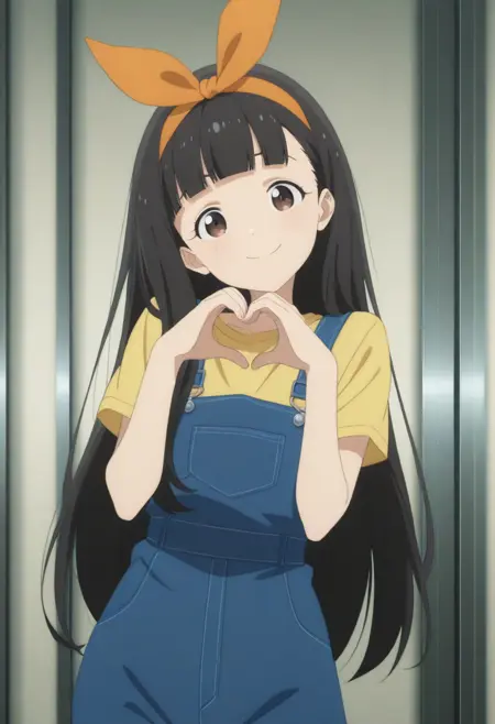 橙色发带, 蝴蝶结, 发饰蝴蝶结, 蝴蝶结发带, 黄色衬衫, 蓝色背带裤,