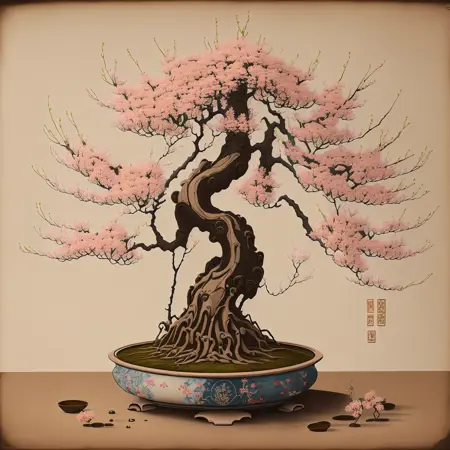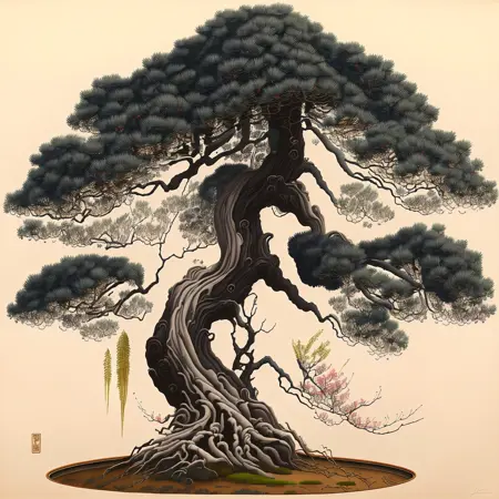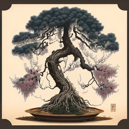在调用触发词后能够展现特殊风格的2D盆景模型