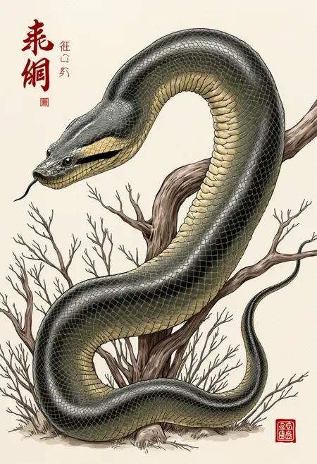 트리거 4n4c0nd4로 학습되었지만, 단순히 'anaconda snake'라고 프롬프트하는 것을 권장합니다.