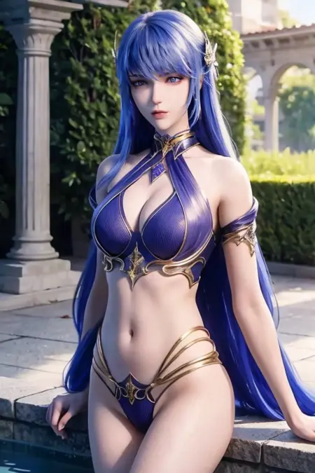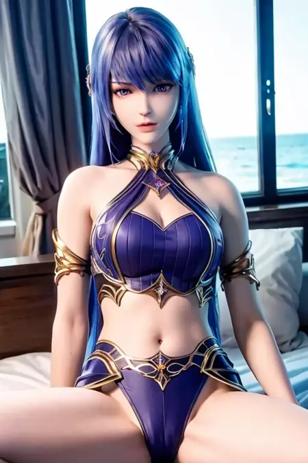 You can use caier, veil, thighhighs, purple hair, blue hair