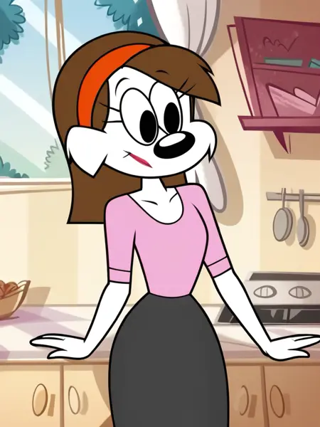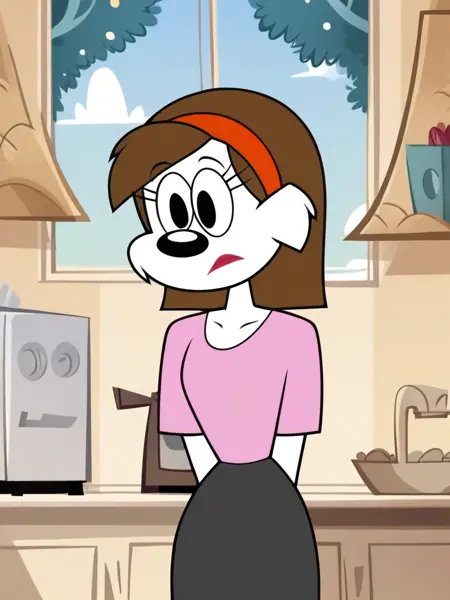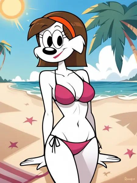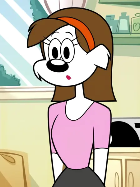 강화 태그: 갈색 머리카락, 빨간 헤어밴드, 흰색 털, 붉은 입술