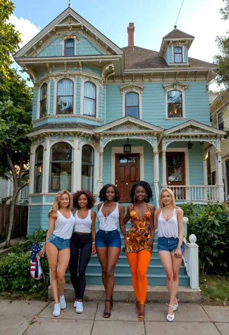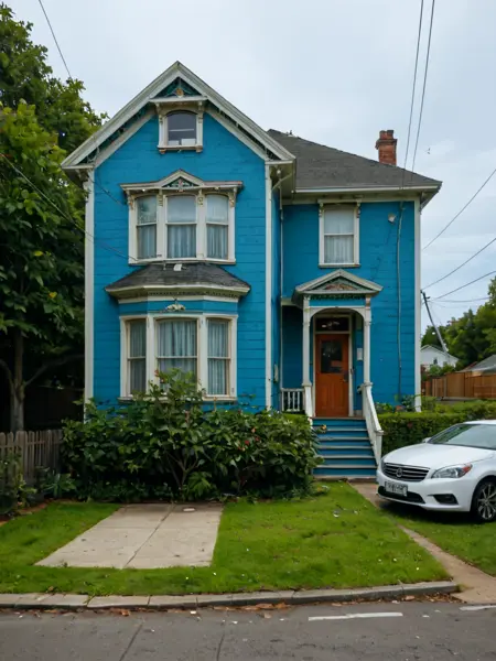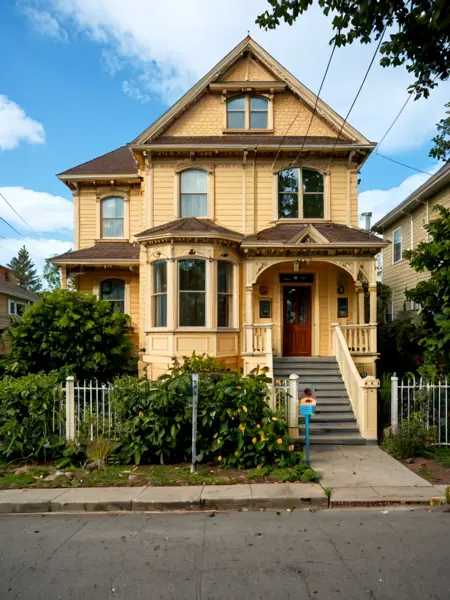 This model generates Victorian houses as built in Northern California between 1870 and 1910. These houses feature lots of ornate trim and moldings that since the 1970s have been repainted in a variety of incredible color schemes. Unlike the Victorian houses of San Francisco, these are not row houses. They do not touch the walls of their neighbors. Although they share a lot in common with Victorian architecture around the world, the surviving houses in Oakland from the period are more modestly sized. Even the smallest 10 square meter home will boast preposterously ornate exterior trim. Works with many Pony variants.