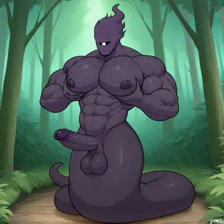 | 학습된 단어 | <lora:Joneo:1>, joneo, one eye, legless, muscular, black sclera, white eye, solo, purple head, (forest background), (mouthless), nude, naked, purple skin, big muscles, pecs, (dark purple nipples), penis, balls, erection, (squeezing your pecs), in forest, full body복사됨! <lora:Joneo-000009:1>, joneo, one eye, legless, muscular, black sclera, white eye, solo, purple head, white background, clothes, black clothes, (mouthless)복사됨! |