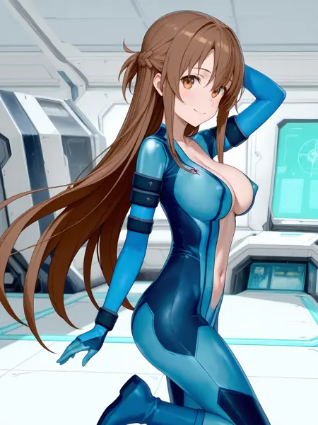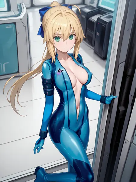 sam_bodysuit, blue bodysuit, cleavage, covered nipples, navel,