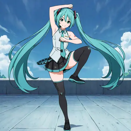 このLoRAは、アニメ『呪術廻戦』第1期のエンディングテーマにある片足立ちのポーズで学習されました。