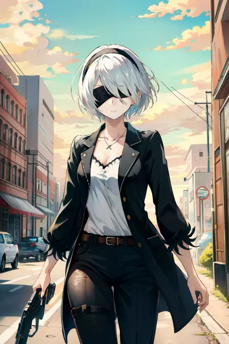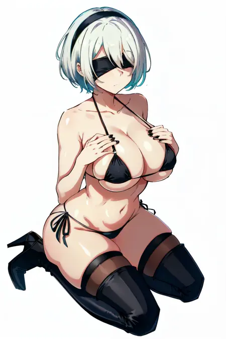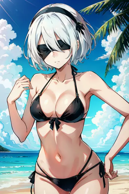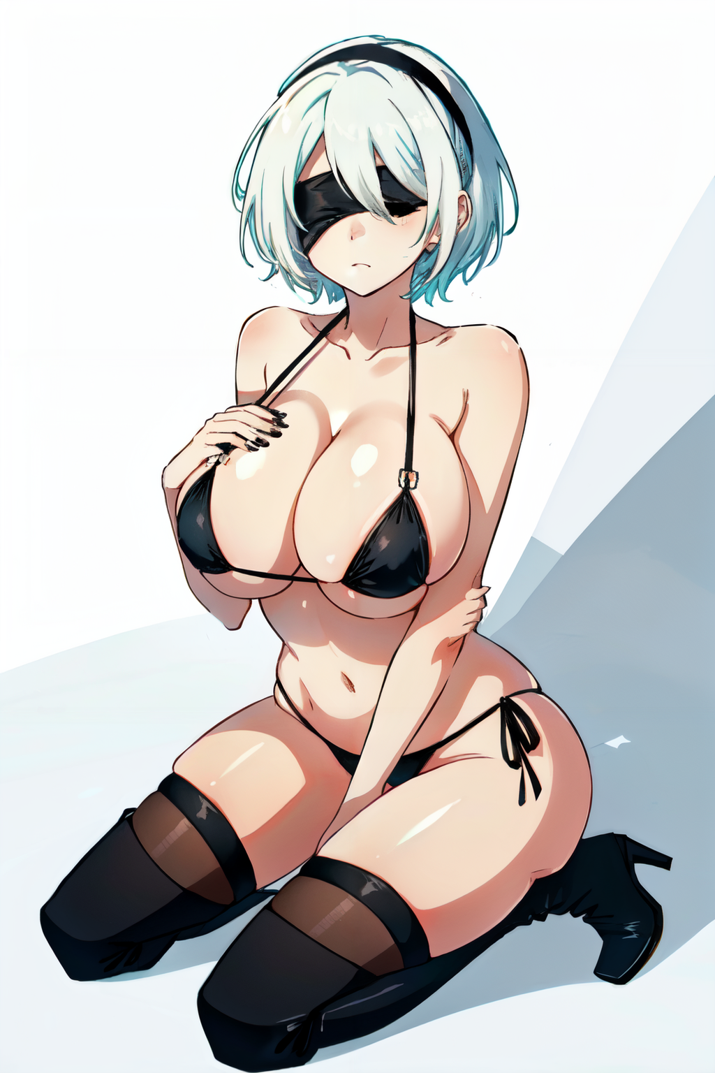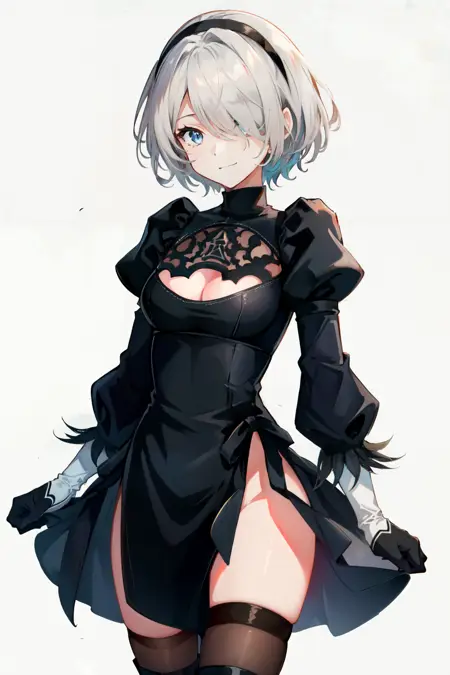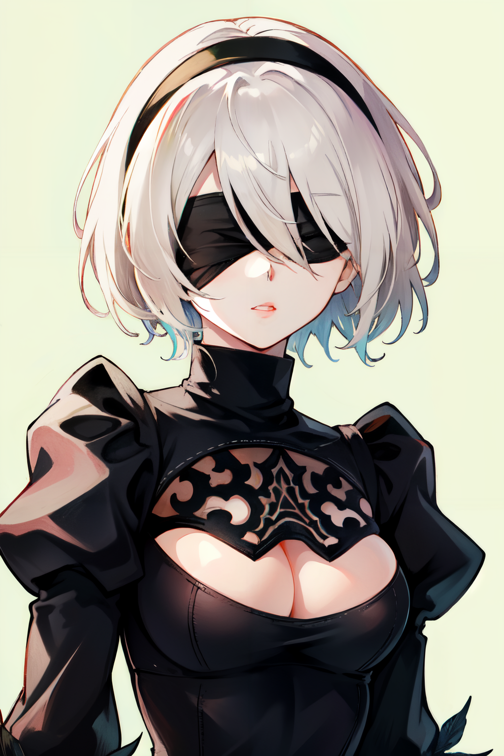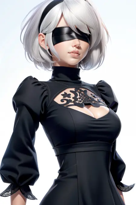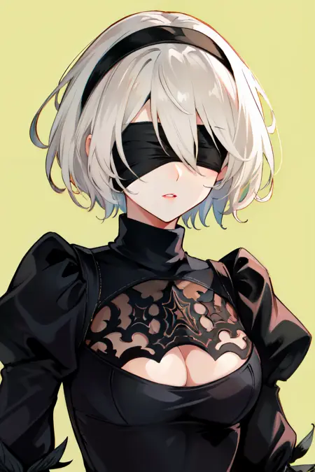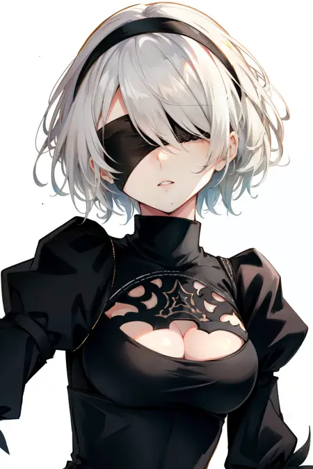 태그 제안: 흰 머리, 짧은 머리, 검은 머리끈, 검은 눈가리개/파란 눈