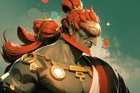세부 정보: 수염, 얼굴 털, 붉은 머리카락, 회색 배경, 초상화, 단순한 배경, 녹색 피부,