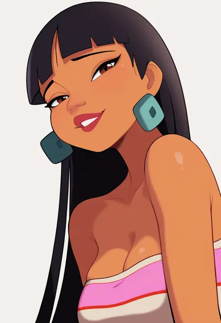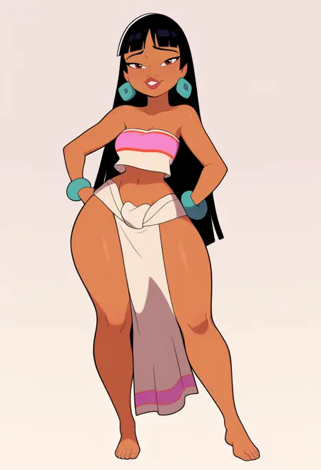 基本プロンプト:1girl, chel, black hair, long hair, blunt bangs, brown eyes, dark skin, lipstick