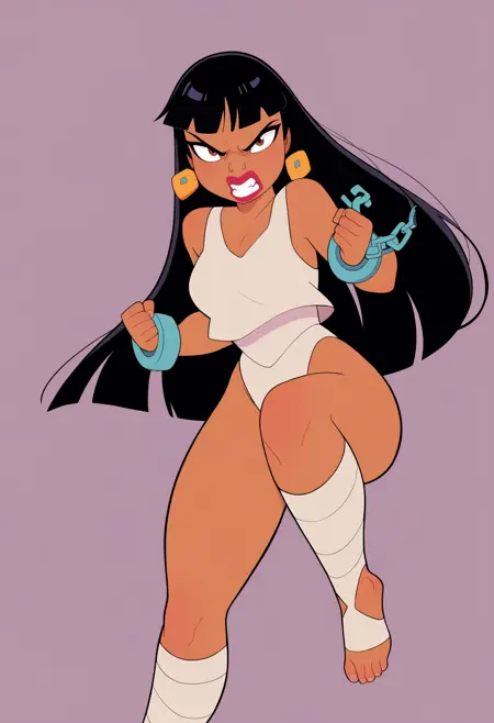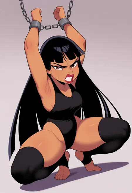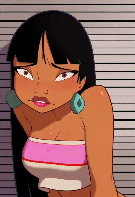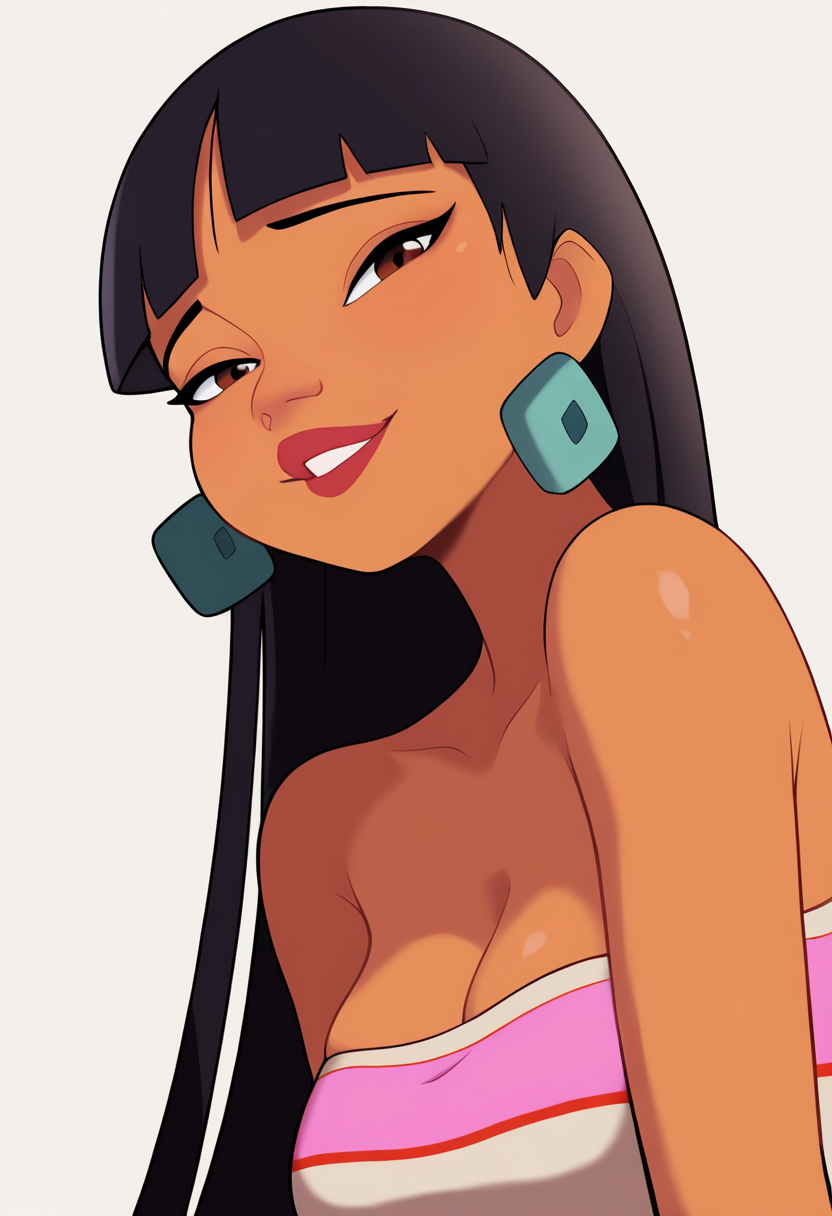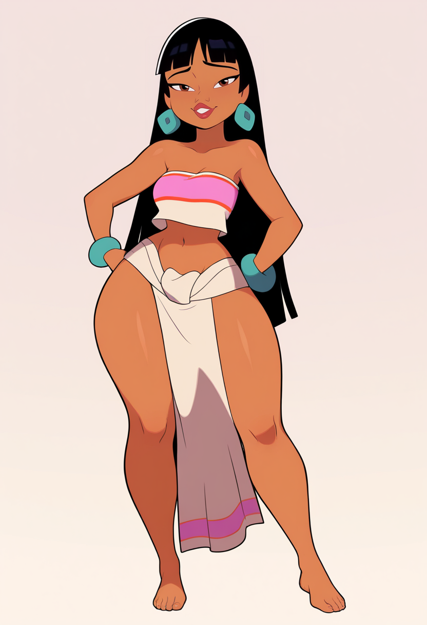 基础提示:1girl, chel, black hair, long hair, blunt bangs, brown eyes, dark skin, lipstick