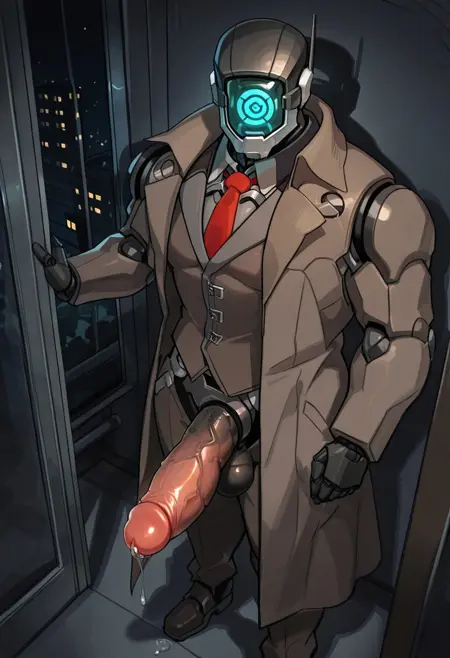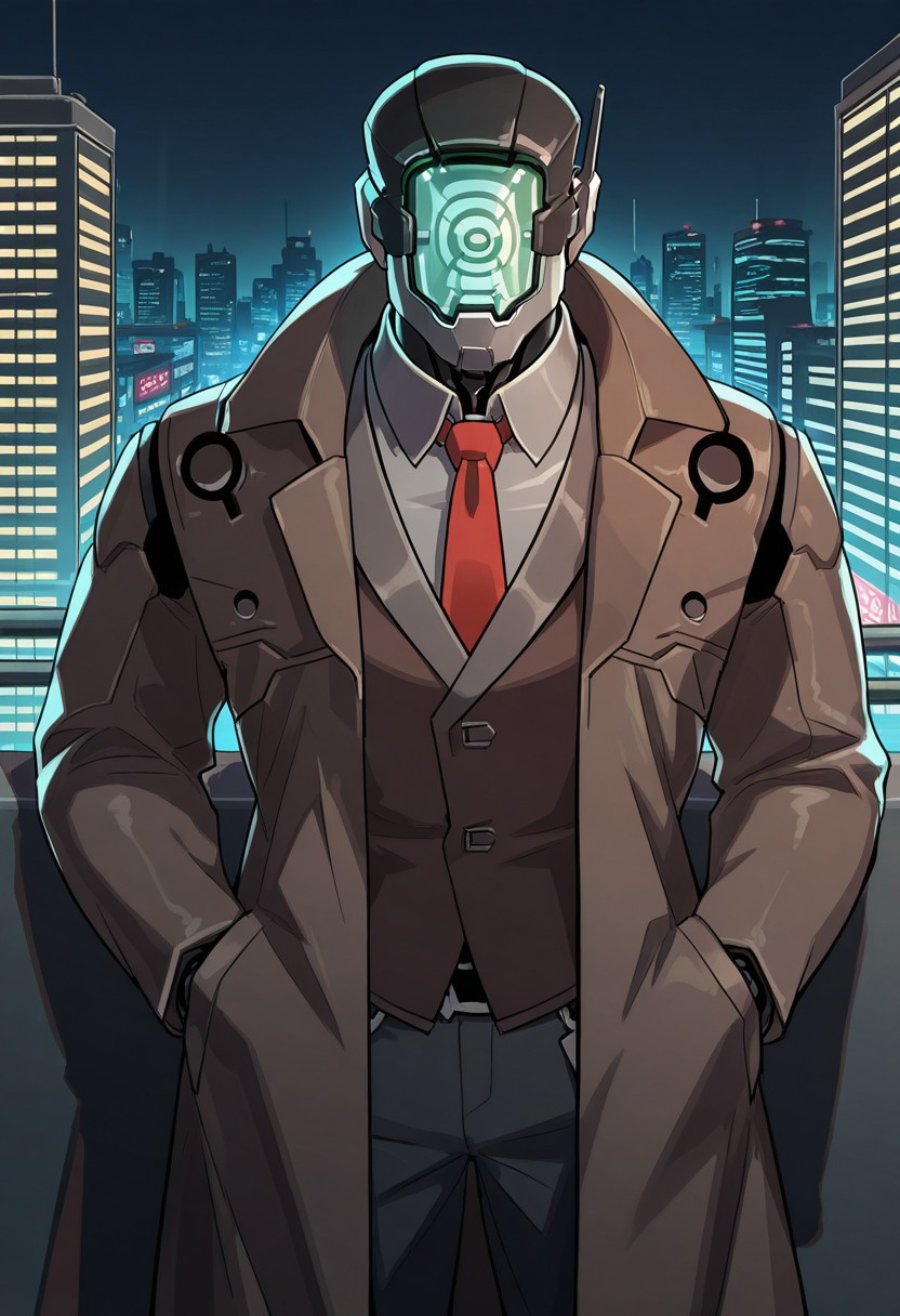 트리거 단어: 레지스, 갈색 코트, 갈색 재킷, 빨간 넥타이