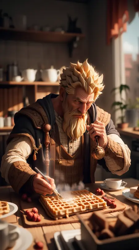 사용하려면 트리거 단어 "WaffleStyle"와 LoRA를 함께 사용하세요.